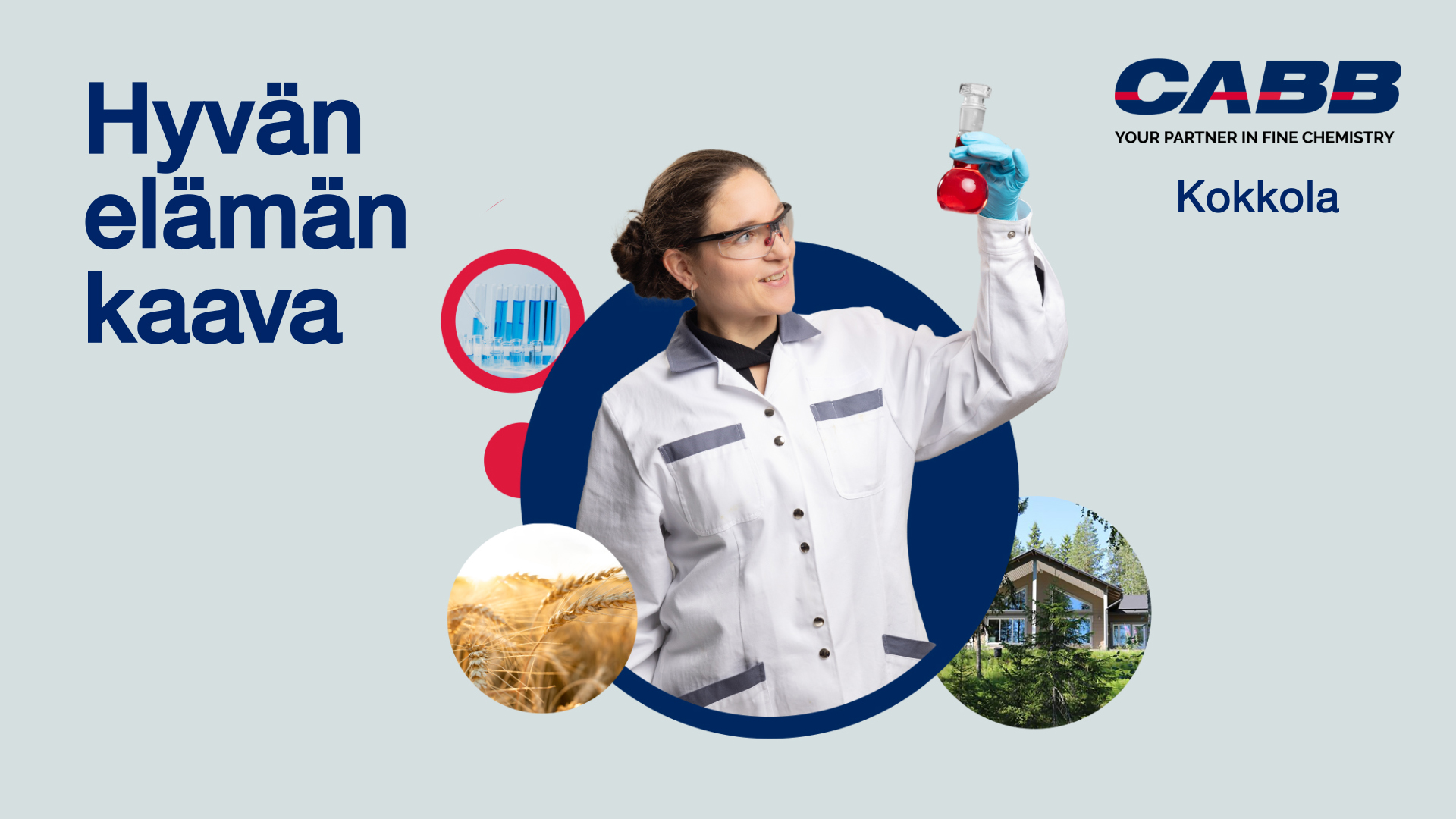 Kemianteollisuudessa toimiva CABB Chemicals halusi vahvistaa Kokkolan tehtaansa kiinnostavuutta työpaikkana asiantuntijoiden keskuudessa. Suunnittelimme kampanjan, jossa tuotiin esiin Hyvän elämän kaavaa, jota CABB tarjoaa Kokkolassa työntekijöilleen.