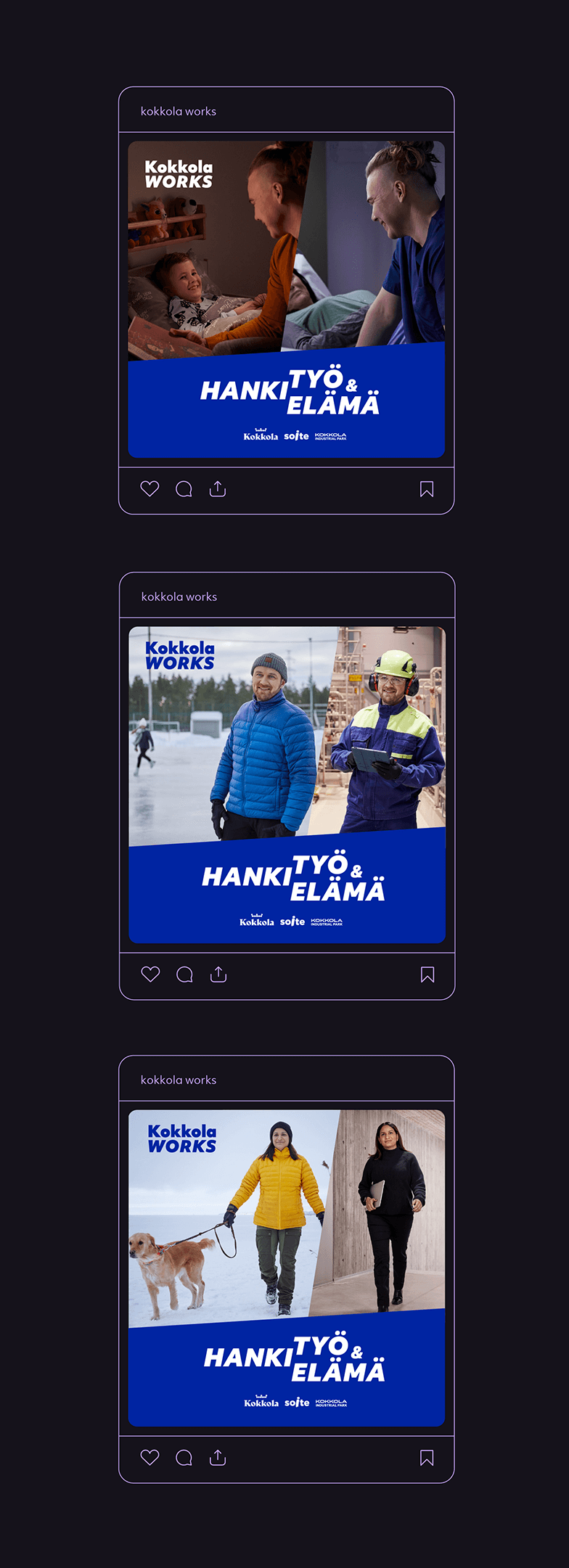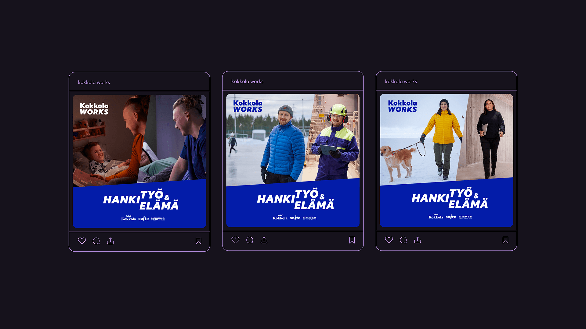 “Get a job & life” was chosen as the theme of the marketing concept. The campaign design was guided by a vision of the high quality of life that the Kokkola region offers to educated workers.