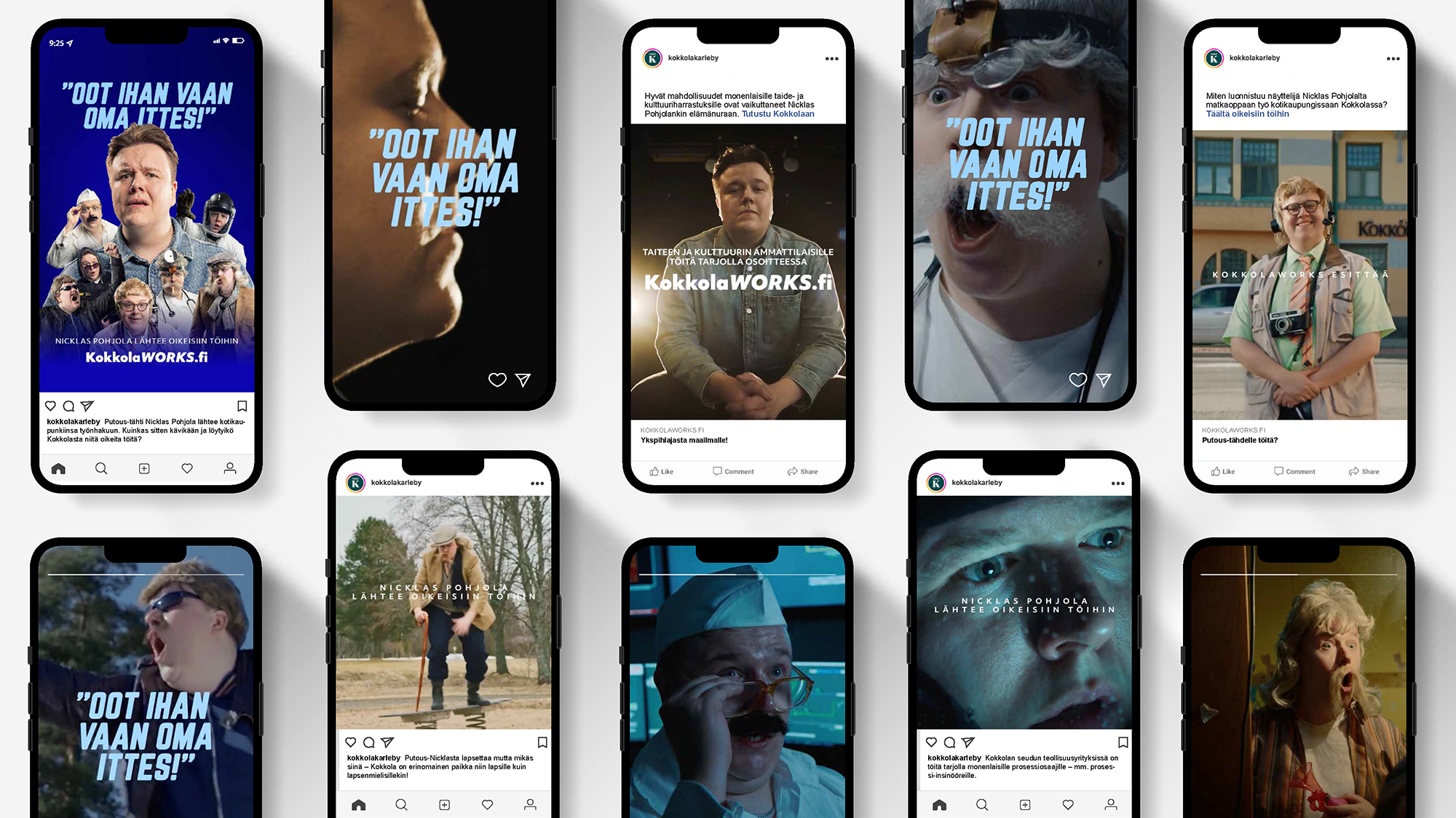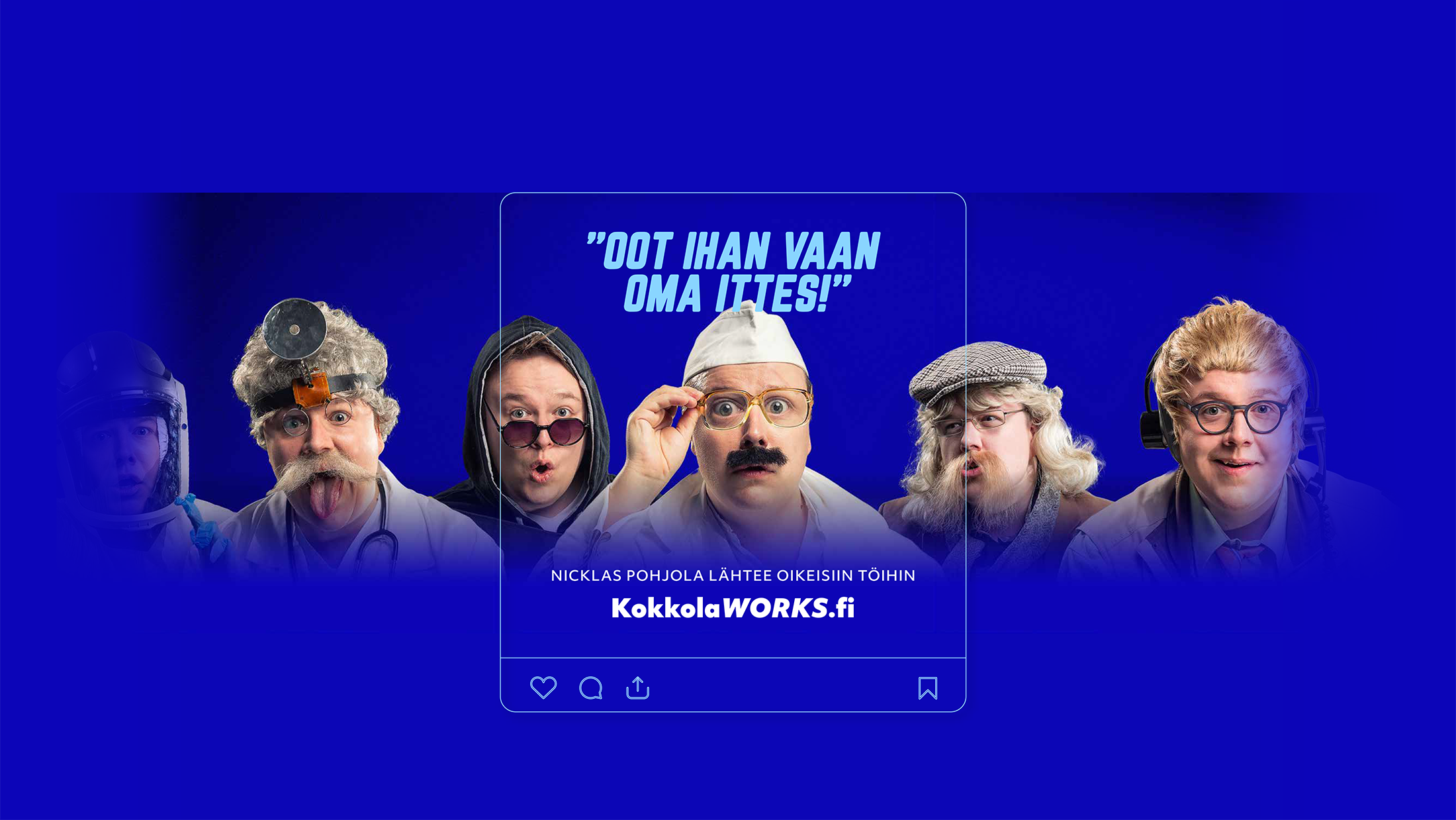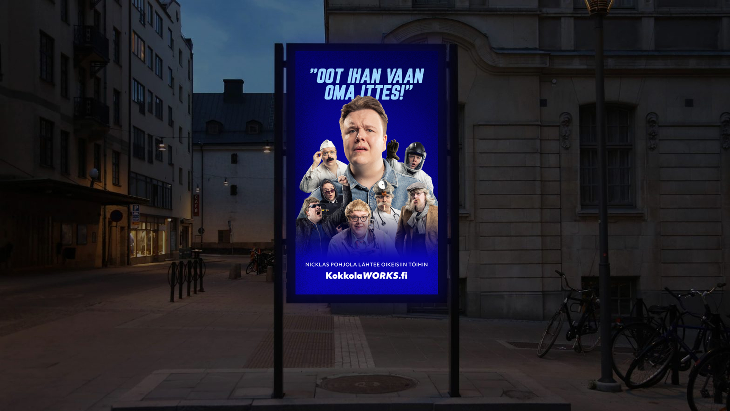 KokkolaWorks on paikallisten yritysten ja julkisen sektorin toimijoiden monivuotinen työ- ja elinvoimakampanja, jonka tavoitteena on saada osaavaa, koulutettua työvoimaa alueelle. Vuoden 2024 kampanjan keulahahmo oli Kokkolassa syntynyt ja kasvanut näyttelijä Nicklas Pohjola, jonka improvisaatioon pohjautuvat humoristiset elokuvalliset videot toimivat kampanjan runkona. Videoita tuotettiin yhdeksän kappaletta teemalla ”Nicklas Pohjola lähtee oikeisiin töihin – Oot ihan vaan oma ittes.” Kampanjan tulokset ylittivät kaikki odotukset: kampanjasivuston liikenne oli ennennäkemättömän vilkasta ja avoimiin työpaikkoihin saatiin laadukkaiden hakemusten vyöry.
